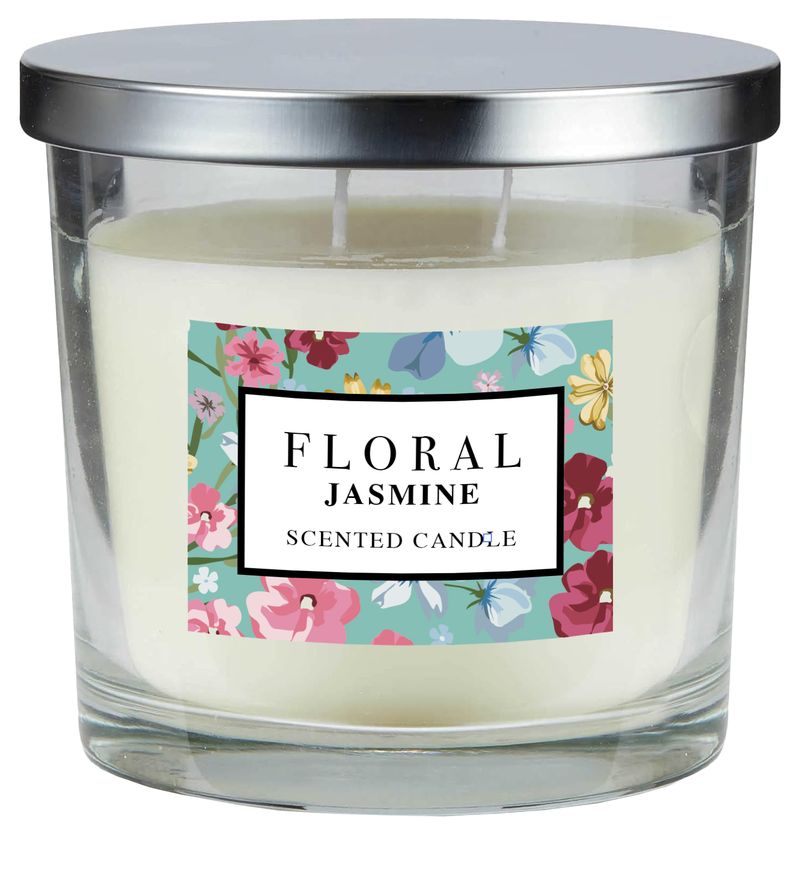 Ilmkert með tveimur kveikum – Floral Jasmine í glerglasi með loki.