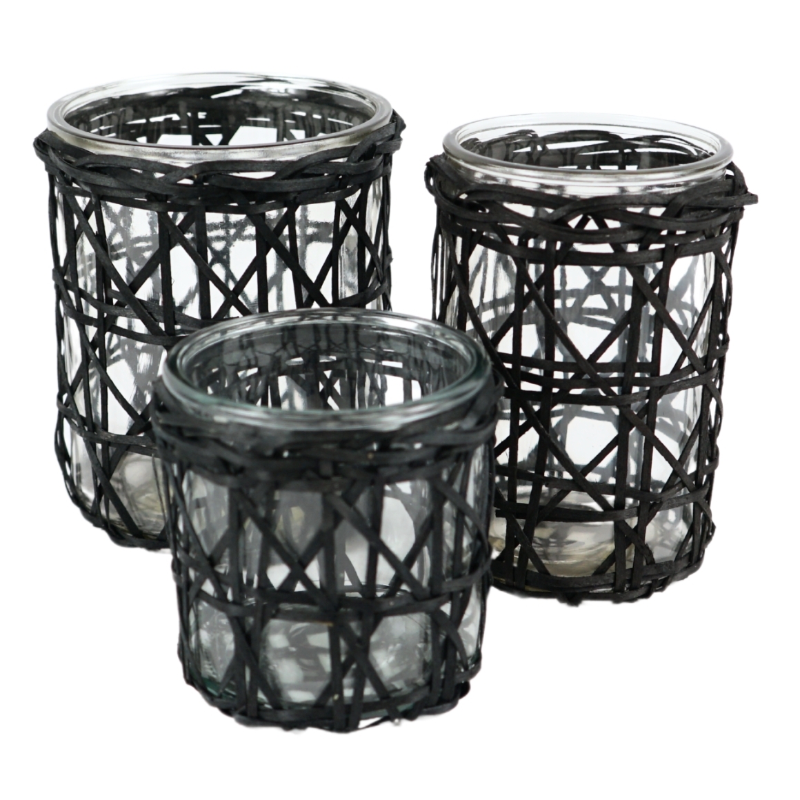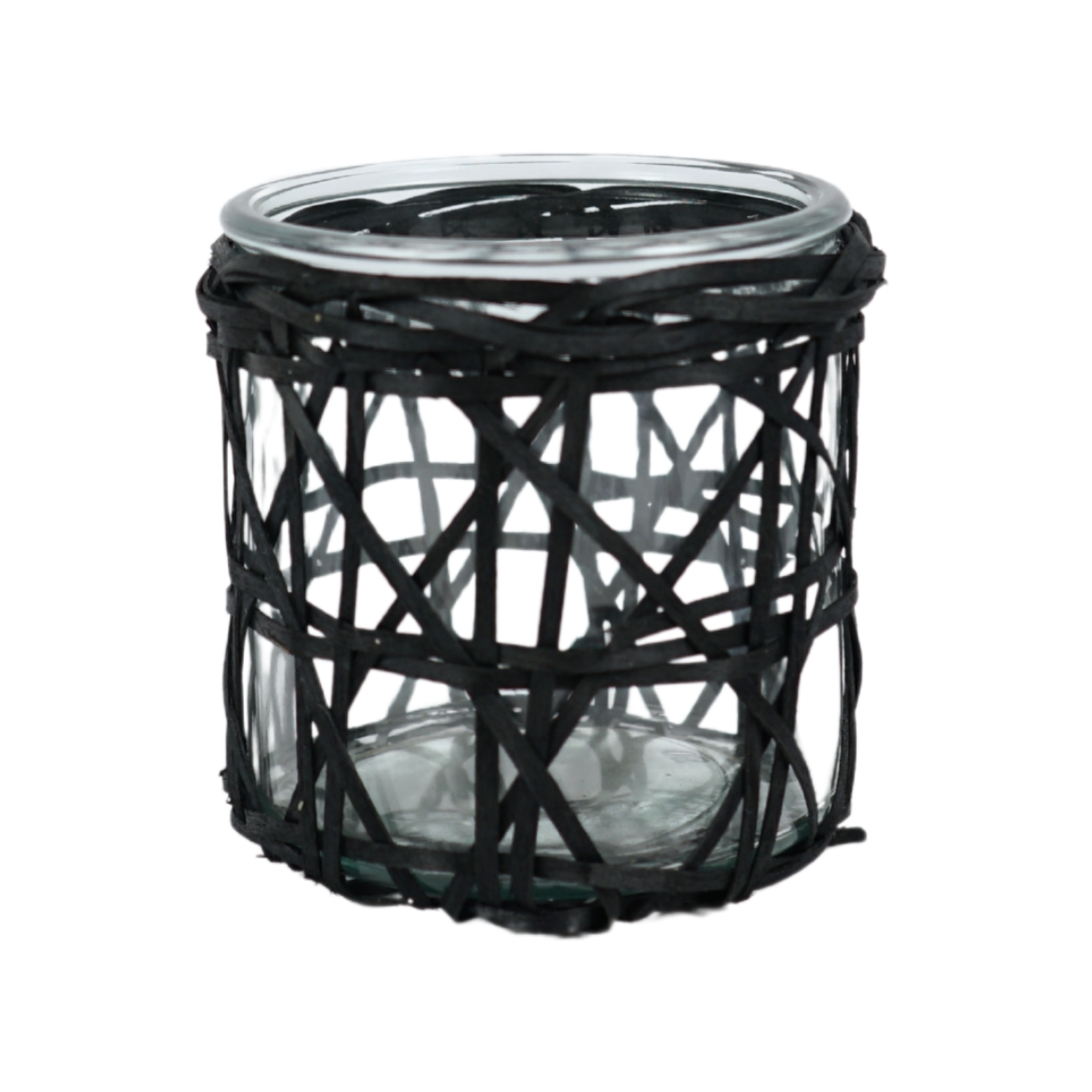 Kertastjaki – Svart bast og gler